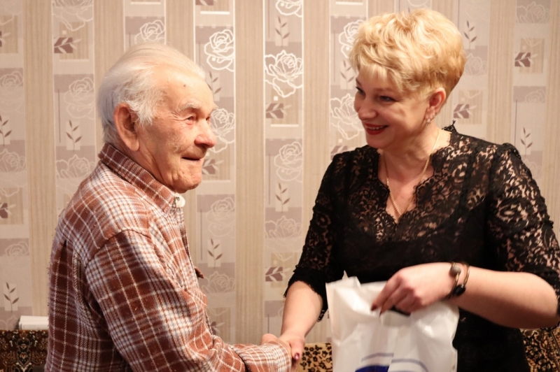 Поздравления 6 марта принимал Василий Сергеев, участник Сталинградской битвы.