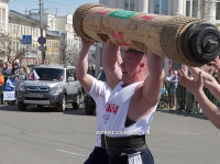 Самого сильного человека выбирают в Вологде. Конкурс силового экстрима проходит на площади Революции. Состязания стартовали в полдень 9 мая.