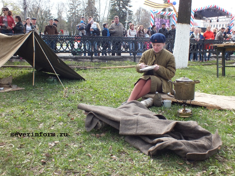 Инсталляцию фрагментов фронтового быта «Мы этой памяти верны» организовало вологодское военно-историческое общество на 9 мая в честь 69-й годовщины победы в Великой Отечественной войне. В сквере у мемориала «Вечный огонь» солдаты в военной форме сороковых годов готовят кашу, санитарки демонстрируют перевязочные материалы военных лет. На площадке военно-исторической инсталляции установлены палатки, а всем желающим дают подержать в руках оружие времён Великой Отечественной войны, сообщает ИА «СеверИнформ».