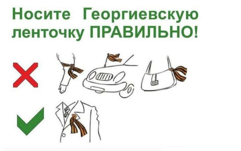 Но при этом необходимо помнить, что лента - не просто украшение, носить ее надо с достоинством. И не стоит цеплять ее на антенны автомобилей или на сумки. Ее почетное место на лацкане пиджака или на блузке в районе груди, сообщает ИА "СеверИнформ".
