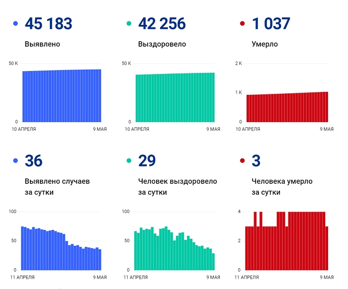 Накануне с больничных выписались 29 человек. За все время от коронавируса вылечились 42 256 человек.