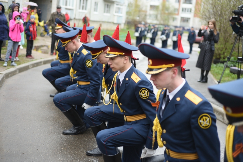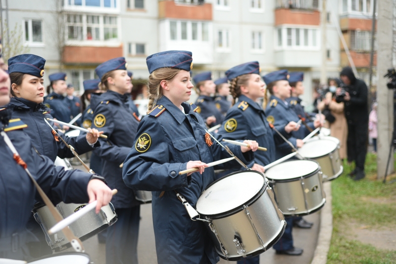 Далее рота почетного караула продемонстрировала показательно-строевое дефиле с карабинами, а ансамбль барабанщиц выступил с новой ритмической композицией. Супругов Сафоновых пришел поздравить и Мэр Вологды Сергей Воропанов.