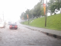 Ливень обрушился на город около 9 утра. Ливневка не смогла справиться с потоками воды. Больше всего жалоб на подтопления поступило от жителей Заречья.