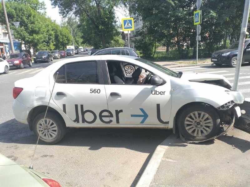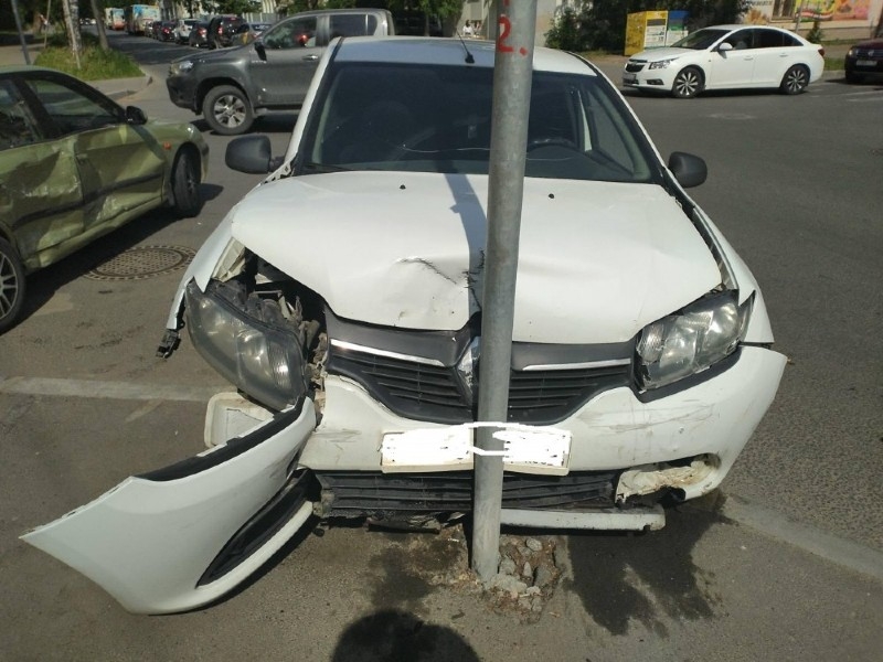 За рулем Хендай сидела женщина 23 лет. На перекрестке Благовещенская - Пролетарская она не предоставила преимущество Рено. 40-летний таксист быстро сориентировался и повернул в сторону, въехав в дорожный знак.