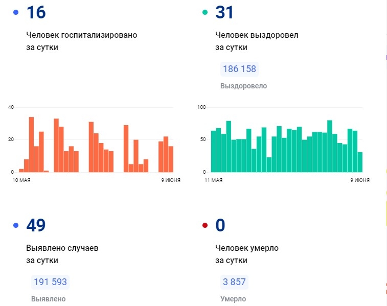 На протяжении многих месяцев в Вологодской области ежедневно появлялась информация о том, что кто-то скончался от коронавируса. 9 июня в статистике значится заветный ноль в соответствующей графе.