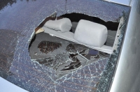 Накануне, в час дня он пьяным явился в магазин, подошел к стоящей в холле иномарке и, замахнувшись сумкой с вещами, разбил заднее стекло.