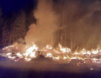 Яркое пламя озарило ночью Окружное шоссе в Вологде