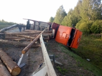 Фура с лесом опрокинулась на трассе в Вологодской области