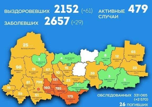 61 вологжанин выздоровел за сутки от коронавируса, заболели 29