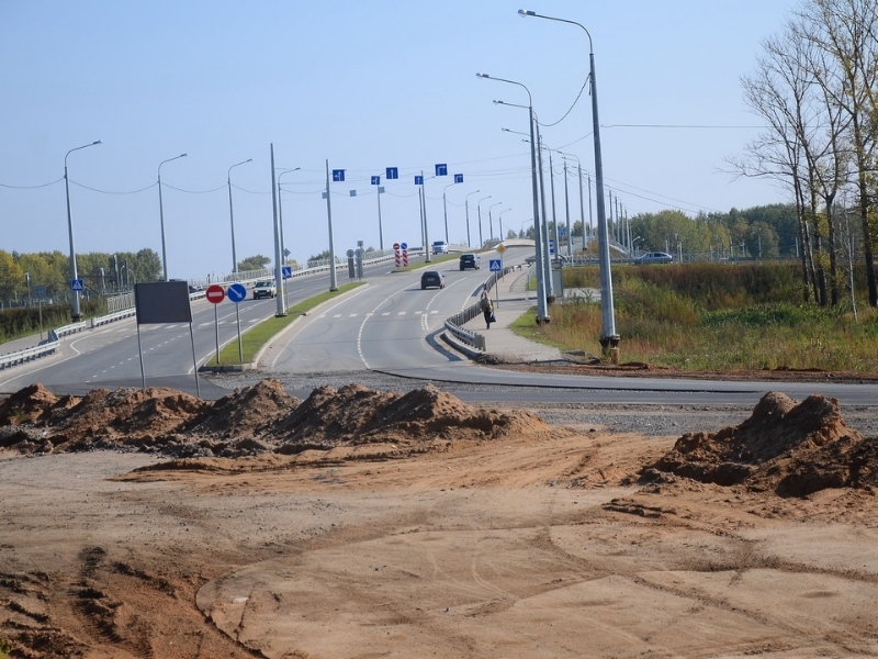 Добавим, сейчас движение от путепровода в сторону Станкозавода осуществляется по временной заасфальтированной дороге, которая проходит параллельно строящейся магистрали.