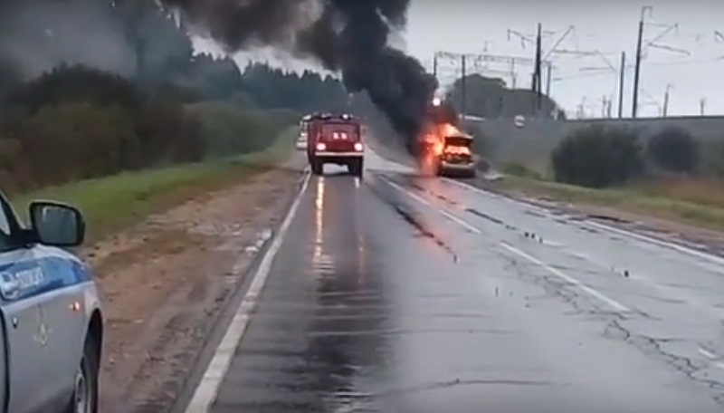 Под Вологдой на трассе сгорел автомобиль, водителя спасли (ФОТО, ВИДЕО)