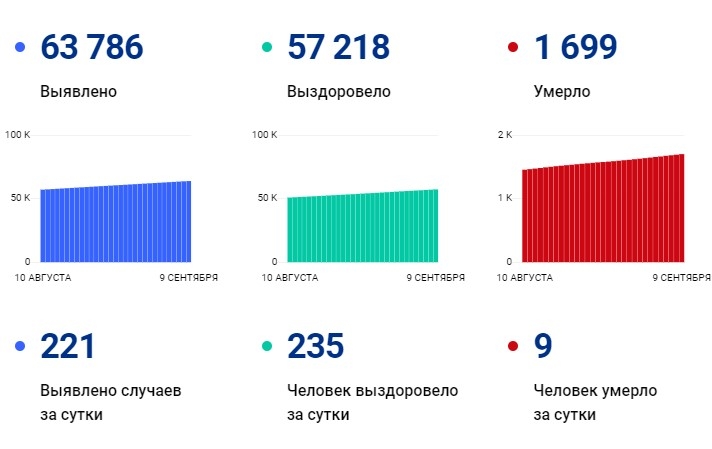 Умерли еще 9 человек с коронавирусом. По данным на утро 9 сентября, общее количество жертв в регионе достигло 1699.