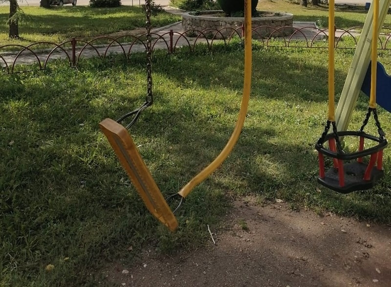 Газета «Шексна» пишет о том, что в поселке испортили очередную детскую площадку на улице Железнодорожной, превратив качели в металлолом.