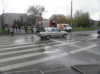 «Волга» остановилась на красный сигнал светофора на перекрестке улицы Сталеваров и Советского проспекта. В это время сзади в машину врезался автомобиль марки «Geely», который не успел затормозить. От удара отечественную легковушку откинуло за пешеходный переход. У нее пробило бензобак. Поэтому на место происшествия выезжали сотрудники пожарной охраны. Они смыли бензин с проезжей части и предотвратили возгорание.