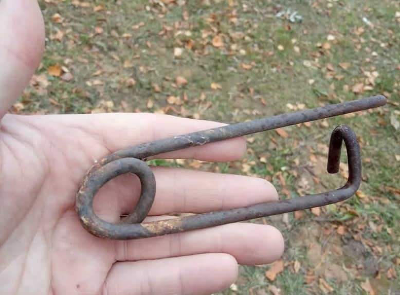 Недавно участок в родовом имении порадовал еще одним свидетельством давних времен. Предмет очень напоминает огромную булавку. Глава района предположил, что она принадлежала некому гиганту, когда-то владевшему здесь 6-ю сотками, сообщает ИА «СеверИнформ».
