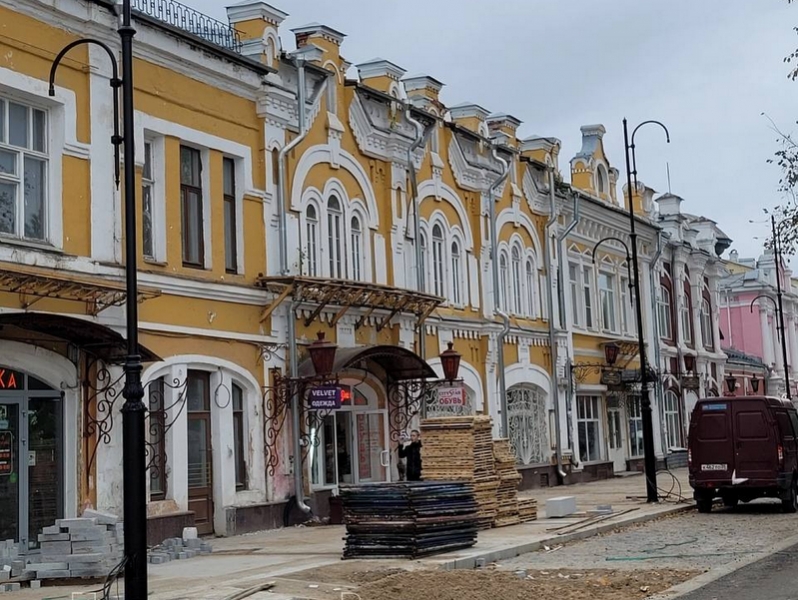 Сейчас идет ремонт тротуаров на левой стороне проспекта. Дорожники делают удобные карманы под парковки, приводят в порядок пешеходную зону. Кованые фонари сделают вечерние прогулки уютнее.