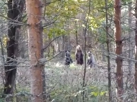 Во время рейда инспекторы увидели в 15 метрах от себя медведицу с тремя медвежатами. Увидев людей, бурые обитатели леса встали на задние лапы, разглядывая гостей.