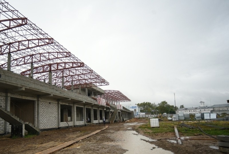 На спортивном сооружении идет грандиозная реконструкция. Уже восстановлено административное здание, построен бассейн, идет работа по обустройству трибун и теннисного корта. Стройка - это всегда грязь. И на колесах машин она попадает на улицы города. Жители района Петина - Южакова не раз обращались в администрацию, к строителям с просьбой обустроить мойку на выезде с объекта.