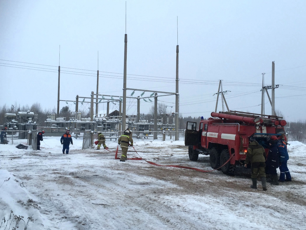 По инициативе ГУ МЧС по Вологодской области на базе производственного отделения «Великоустюгские электрические сети» филиала ПАО «МРСК Северо-Запада» «Вологдаэнерго» (дочерняя компания «Россети») прошли тактико-специальные учения по тушению пожара на электроустановках (подстанция 35/10 кВ "Кузино"), и совместных действий при перерывах в электроснабжении в период неблагоприятных климатических условий.