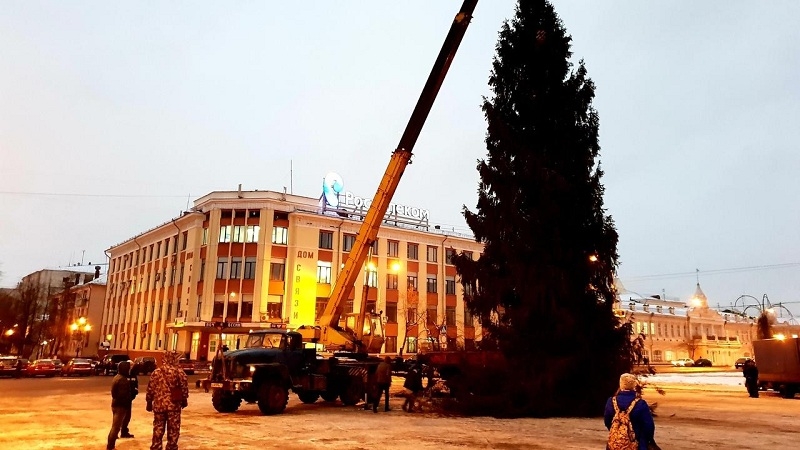 Сегодня елку будут украшать игрушками и гирляндами. Это уже 17-я живая ель, которую установили в городе, всего их будет 19, сообщает ИА «СеверИнформ».