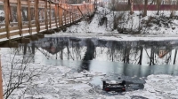 Полицейские, прибывшие на вызов, обнаружили «Хендай Солярис» в реке Колпь вблизи подвесного пешеходного моста. Очевидно, иномарка не вошла в поворот, слетела с дороги и, проломив лед, рухнула на крышу в воду.