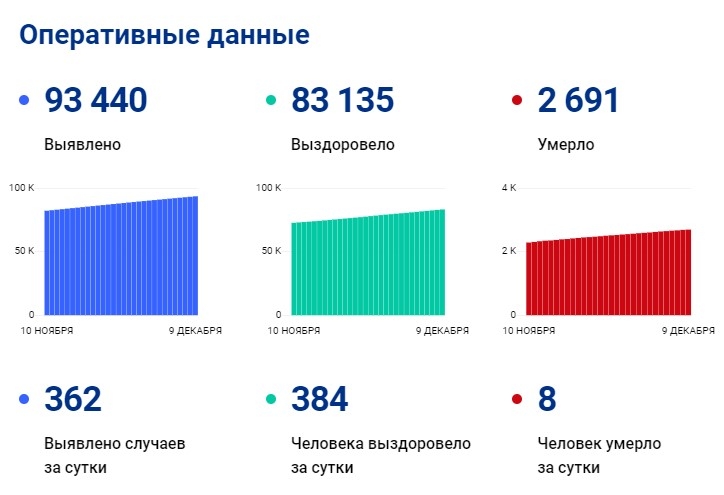 За сутки выявлено 362 новых случая. Всего с начала пандемии диагноз «коронавирус» поставлен более 93,4 тысячи раз. Выздоровели 83,1 тысячи пациентов, включая 384 за минувшие сутки. Число активных случаев ковида постепенно уменьшается.