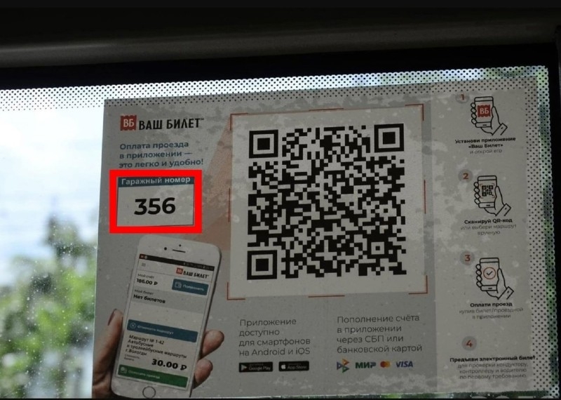 Чтобы воспользоваться оплатой с помощью QR-кода, нужно скачать бесплатное приложение «Ваш билет». В нем есть электронный кошелек, который пополняется через систему быстрых платежей и с банковской карты. С помощью приложения нужно отсканировать QR-код или ввести номер машины с афиш, расположенных в салоне автобуса или троллейбуса ПАТП-1 и нажать кнопку «Оплатить».