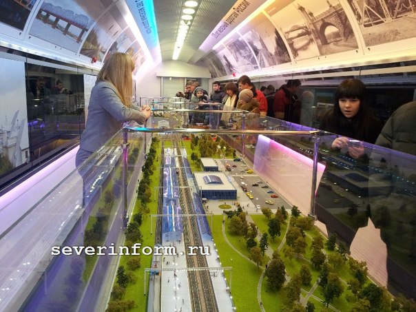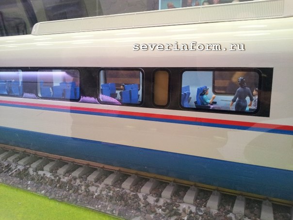 Поезд уже побывал в Северодвинске, Архангельске, Сольвычегодске, Печоре, Сыктывкаре и Рыбинске. В вагонах-залах вологжане могут по выставочным экспонатам проследить всю историю развития в России скоростного и высокоскоростного железнодорожного движения. Посетители сами могут сесть за панель управления поезда-тренажера, посмотреть на атомный реактор в разрезе, увидеть уменьшенные копии супер-современных пассажирских и грузовых локомотивов.