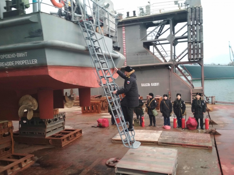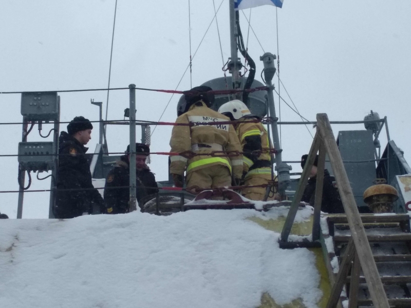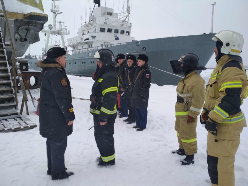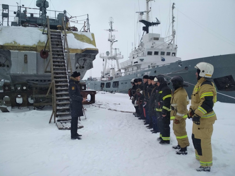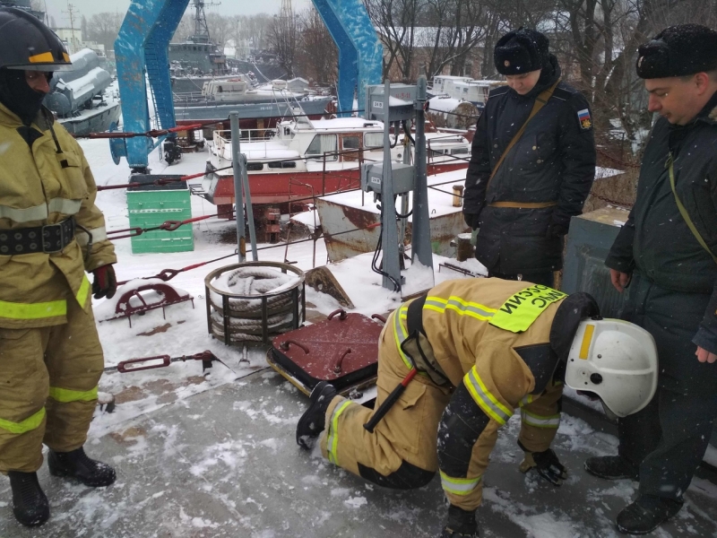В ходе проведения учения дежурными службами завода было организовано взаимодействие между командованием корабля, оперативным дежурным МЧС, дежурной службой пожарной части по охране Балтийского муниципального района ГУ МЧС.