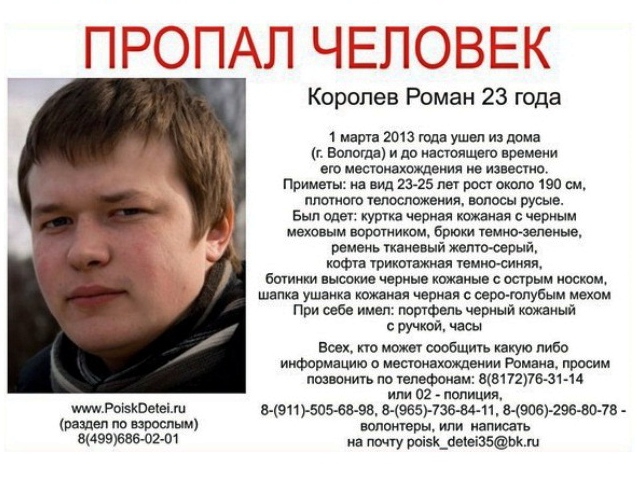 Добавим, также до сих пор не нашли еще двух мужчин в Вологодской области. 23-летний Олег Патрушев ушел из дома 18-го февраля. А 37-летний Илья Кретнев потерялся еще в ноябре прошлого года.