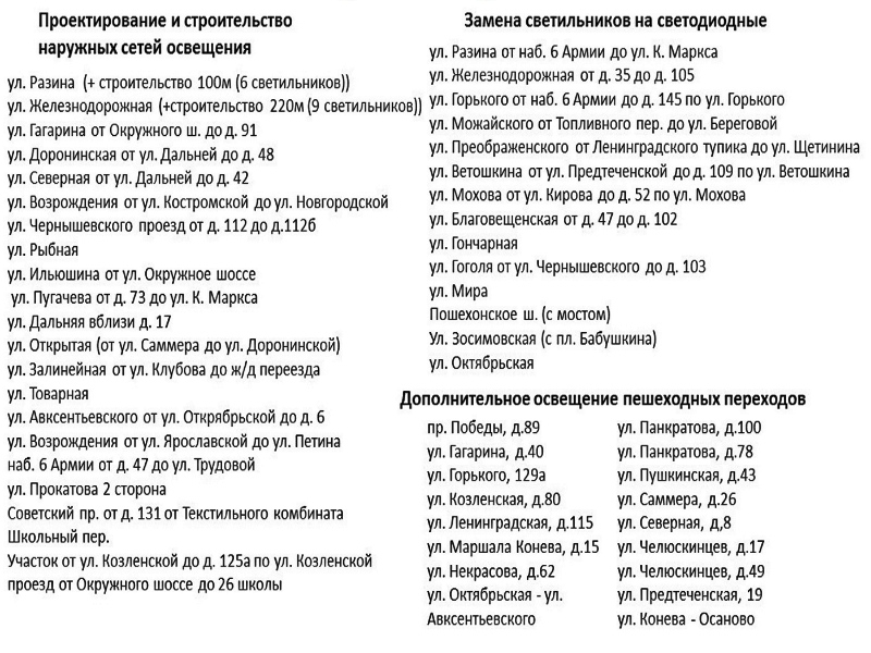 Список улиц, на которых скоро станет светлее
