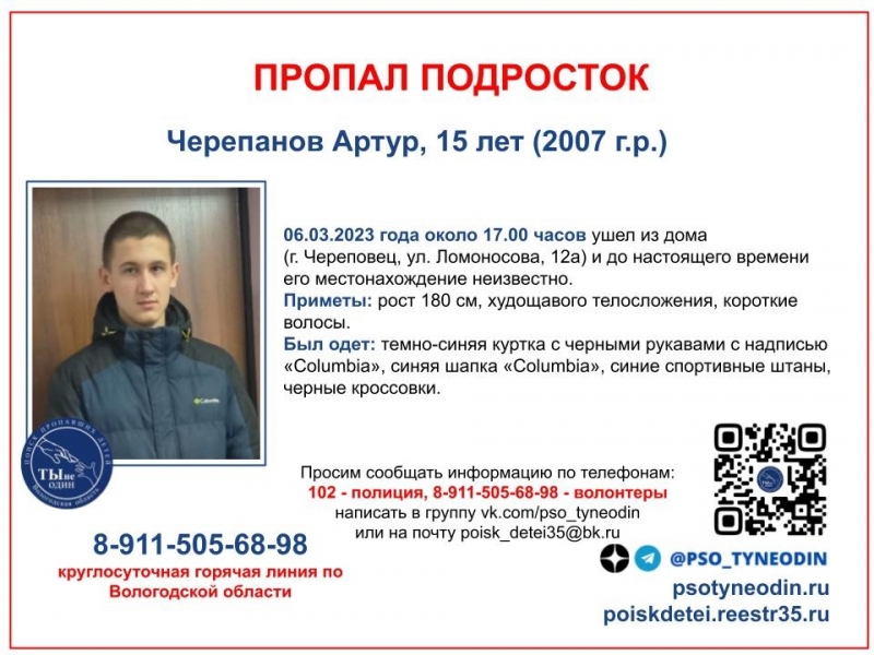 Всем, кто может содействовать в поисках, просьба обратиться по указанным телефонам, сообщает ИА «СеверИнформ».