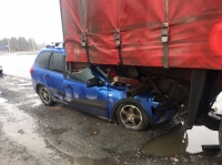 ДТП случилось сегодня, 10 апреля, около половины одиннадцатого утра на 422-м километре дороги. «Лада Калина» неожиданно без видимых причин съехала на обочину и попала под припаркованный грузовик «Вольво».