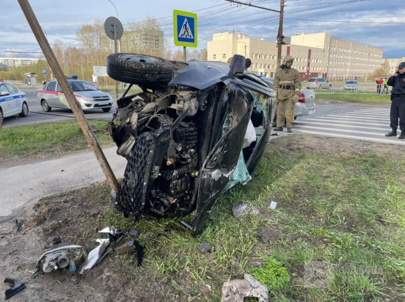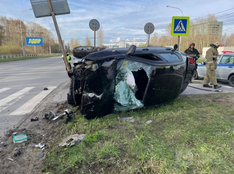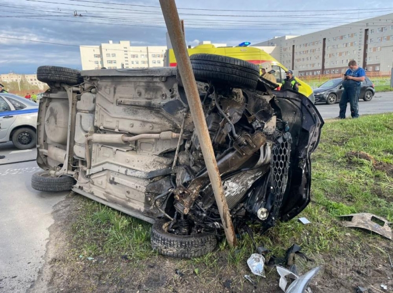 Иномарка совершила кульбит во время полицейской погони в Вологде