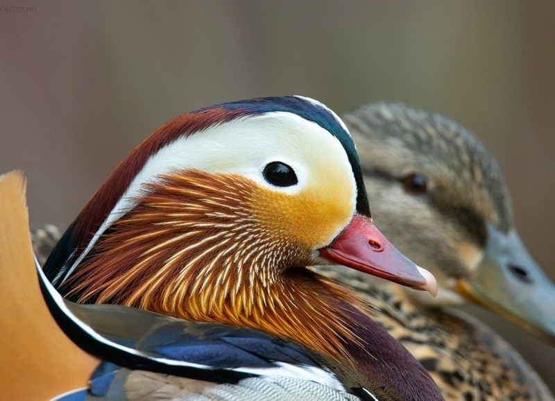 Известный петербургский фотограф Антон Кубышкин запечатлел историю любви: самец редкой птицы мандаринки отбил у селезня его даму и везде плавает только с ней. Однако селезень не сдается и держится поблизости, хотя крякву видимо устраивает ее новый партнер.