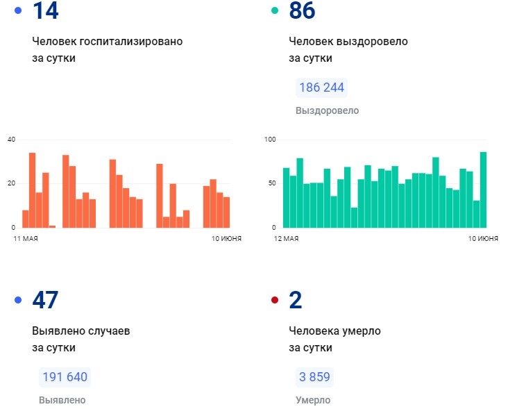В моногоспитали попали 14 пациентов. Такие данные на утро 10 июня публикует портал стопкоронавирус.рф.