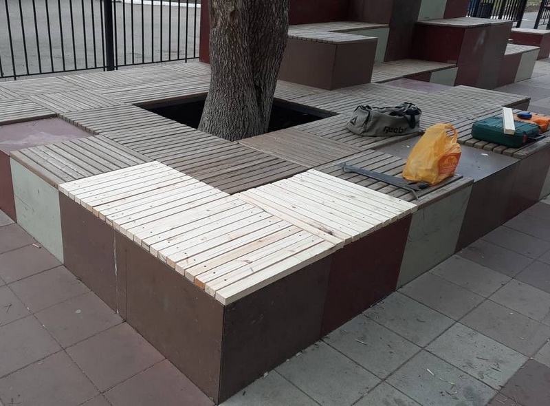На бульваре Пирогова заканчивается обновление амфитеатра у школы №5. Меняют скамейки, урны, фонари, освежили покраску, заменили рейки. Работы пройдут еще несколько дней.