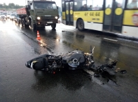 Напомним, в последнее время выросло количество происшествий с водителями мотоциклов. Одним из них «везет» - например, так, как молодому человеку, мотоцикл которого улетел под трамвай, другим – не очень. Нередки и случаи смертельных исходов.