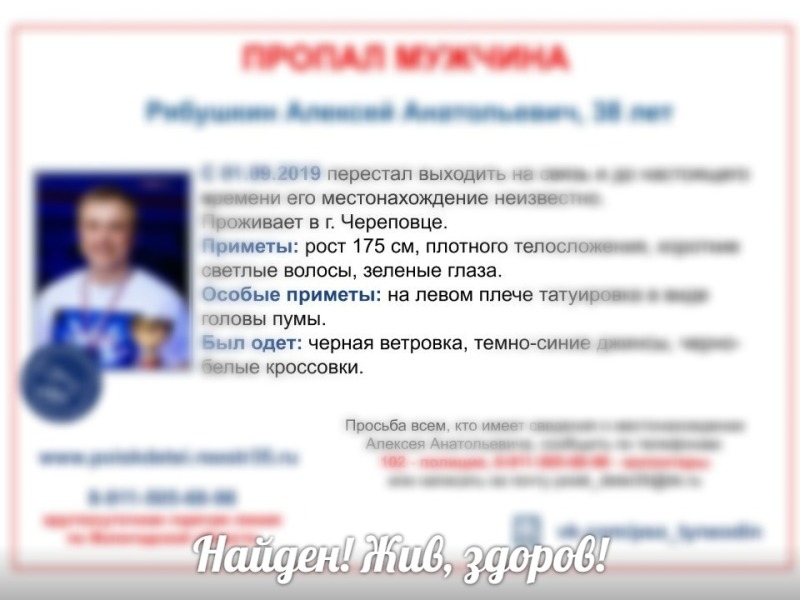 38-летнего Алексея Рябушкина удалось найти силами полиции. Об этом сообщают волонтеры поисково-спасательного отряда «Ты не один».