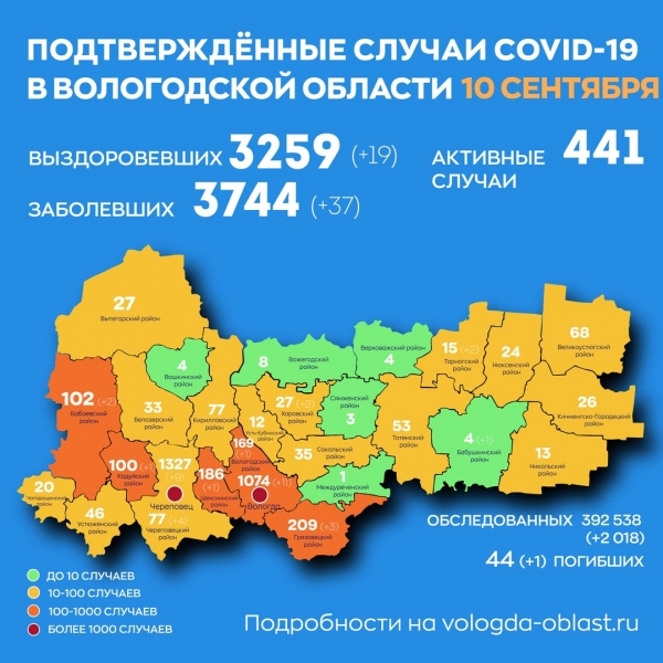 Статистику на 10 сентября опубликовал глава региона. За минувший день в области заболели 37 человек: