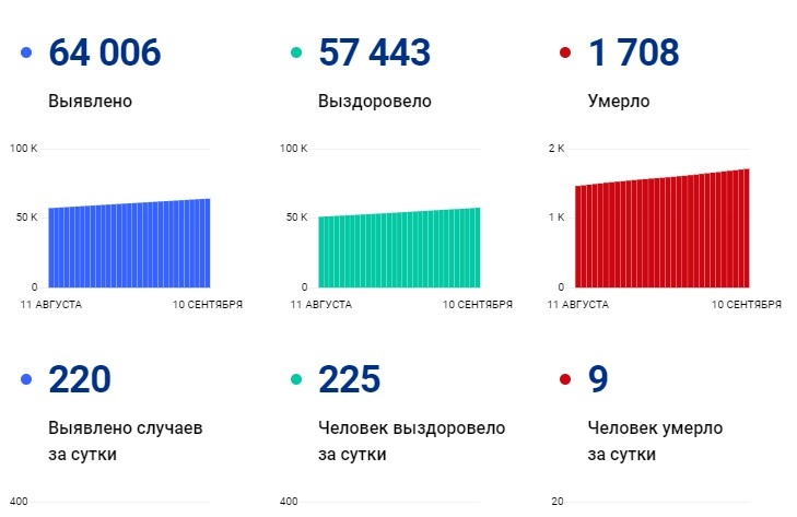 В том числе, за сутки выявлено 220 новых случаев. Выздоровели 225 человек. Общее количество вологжан, поборовших болезнь, достигло 57443. Таковы официальные данные портала стопкоронавирус.рф на утро 10 сентября.