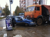 "КАМАЗ" и легковушка столкнулись в