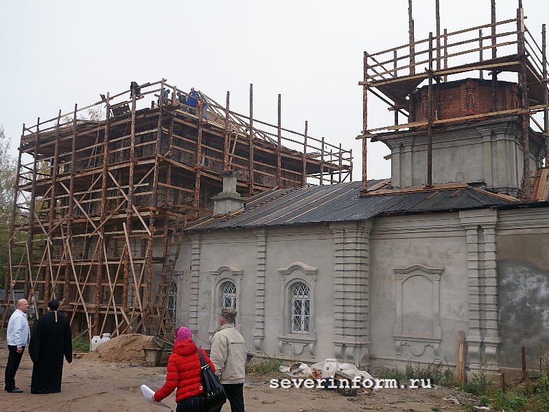 Как рассказала корреспонденту ИА «СеверИнформ» автор проекта реставрации храма Елена Никитина, работы ведутся по чертежам 20 века, фотографиям и архивным документам. За первые три года реставрации восстановлен придел, частично колокольня. В настоящее время восстанавливают свод трапезной и крышу.