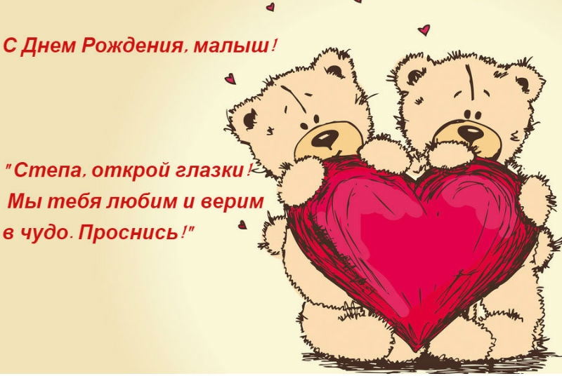 «Степа, сегодня тебе исполняется 7 лет. Мы все очень полюбили тебя. Поздравляем тебя с днем Рождения, обнимаем тебя нашими крепкими объятиями и просим всем миром: открой глазки, малыш!»
