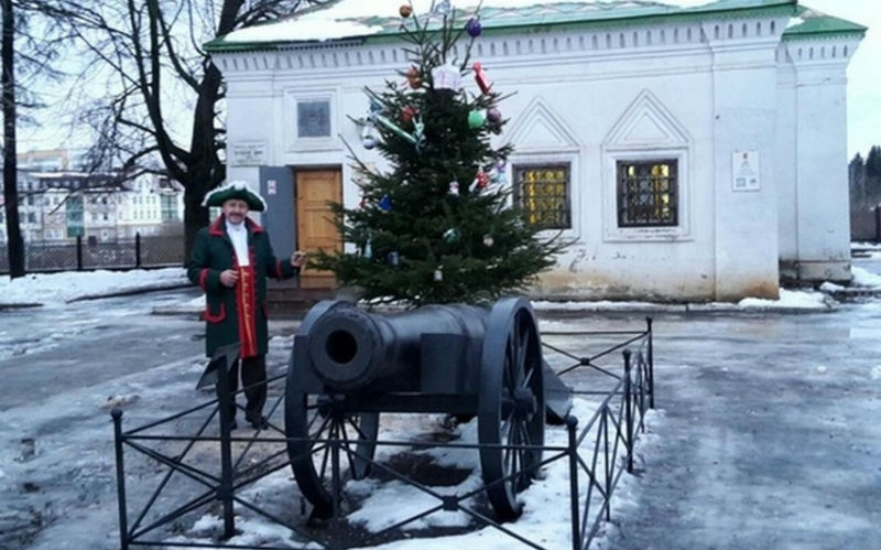 У Домика Петра I на Советском проспекте третий год в преддверии Нового года появляется живая елка, право появляться на которой имеют только самодельные украшения от маленьких вологжан.