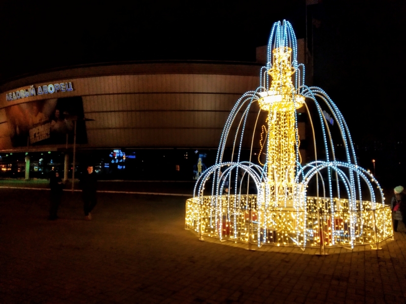 В городе уже действует два светодиодных фонтана. Первый из них включили на площади Молодежи в День города. Затем заработал объект возле Ледового дворца.