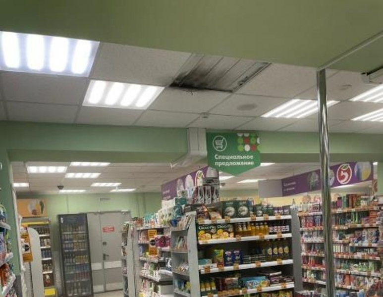 После закрытия торговой точки в зале замкнула потолочная лампа.