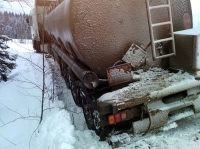 ИА «СеверИнформ» писал об этом инциденте. Водитель фуры решил сократить путь до Архангельской области и свернул с плотной трассы в лес. Тяжеловесная машина не смогла проехать по рыхлой лесной дороге. Спасатели Арктического центра «Вытегра» попытались помочь, пригнали трактор, зацепили тросом бензовоз, но вот фура прошла только 200 метров. Колеса окончательно завязли в снегу.