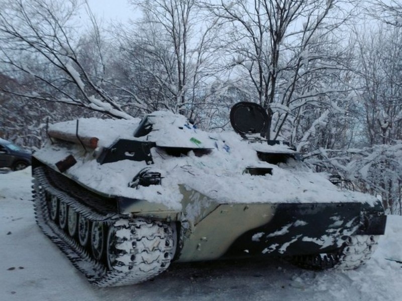 Житель Апатитов въехал в супермаркет на броневике и украл вино (ВИДЕО)