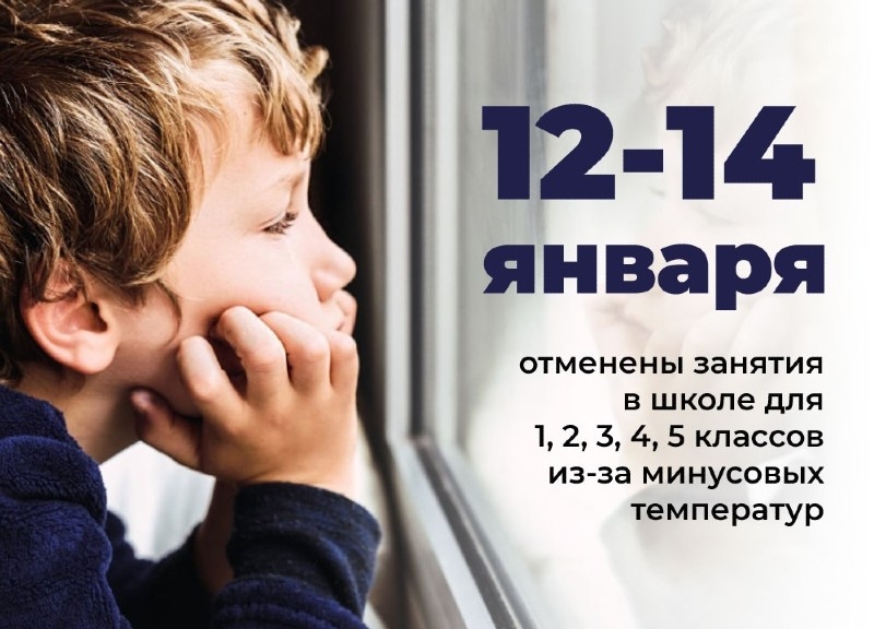 12,13 и 14 января в связи с минусовыми температурами школьники с 1 по 5 класс включительно не учатся.